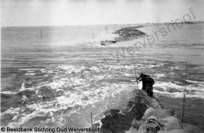 | Bijzonderheden | : | Jaap Huisman voor, Klaas Schuitemaker midden, en Niek Roozendaal rechts bij een dijkgat met snel stromend water. |