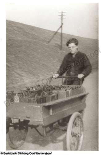 | Titel | : | Paulus Berkhout 'de olieman' op zijn bakfiets ventend met peteroliebussen. |