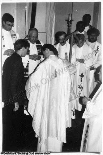 | Titel | : | De priesterwijding van Sjaak de Boer door Mgr. Lescrauaet in de Werenfriduskerk op 25-10-1986. |