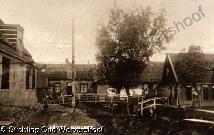 | Bijzonderheden | : | Het huis in het midden, waar de was voor hangt, was van de familie Van der Meer. Tot ca. 1919 was de Bangert vanaf de dijk bereikbaar via een houten (later betonnen) brug. Hier stonden, behalve veel arbeiderswoninkjes, ook ongeveer twaalf boerderijen, gelegen aan verschillende naamloze steegjes en paadjes. Het haventje en de sloten maakte dat diverse huizen alleen per bruggetje bereikbaar waren. Wegens slechte hygiëne door het stilstaande water in het haventje en de slechte staat van de meeste woningen, is de Bangert vanaf de beginjaren 1950 gesaneerd. Rond 1966 was deze sanering voltooid. Zie ook foto 05321, 13311, 13355, 13359, 13361. Zie Skriemer 21, 2017: 'Ôos bedoerning: van J.P.Aker tot de Zeehoek'. Zie Kriemer 24, 2020: Effen Buurte-De Bangert |