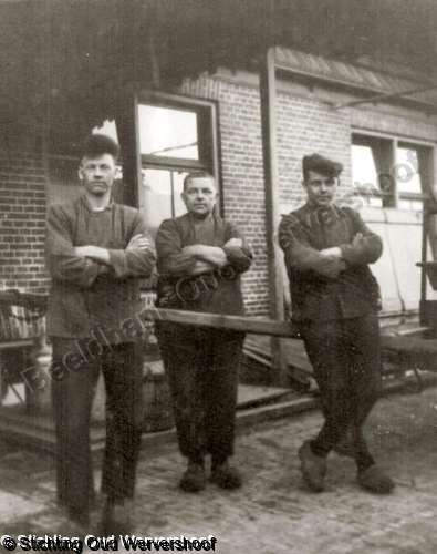 | Titel | : | Vlnr: Klaas Dekker, Jan van Dijk, Piet van Dijk bij de melkfabriek 'De Eensgezindheid'. |