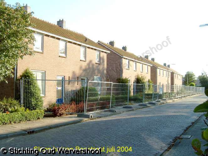 | Bijzonderheden | : | De woningen zijn gebouwd in 1958. Deze blokken vormden de eerste nieuwbouwwijk in Wervershoof, waarna ook de woningen aan de Kalverstraat en Kromme Leekstraat werden gebouwd. De eerste bewoners waren de families Willem Rasch, Niek Koomen-Klein, Antoon Boon-Kooter, Guus Kaag-Bron, Piet Kaag, Meindert Bakker-Haakman, Joh Aker-Sijm, Arie Epke, Simon Tensen, Rijk de Beer. In 2004 zijn de woningen gesloopt en vervangen door nieuwe woningen. Zie ook foto 04270, 04271, 08199,10651, 10653, 10654, 10655 |